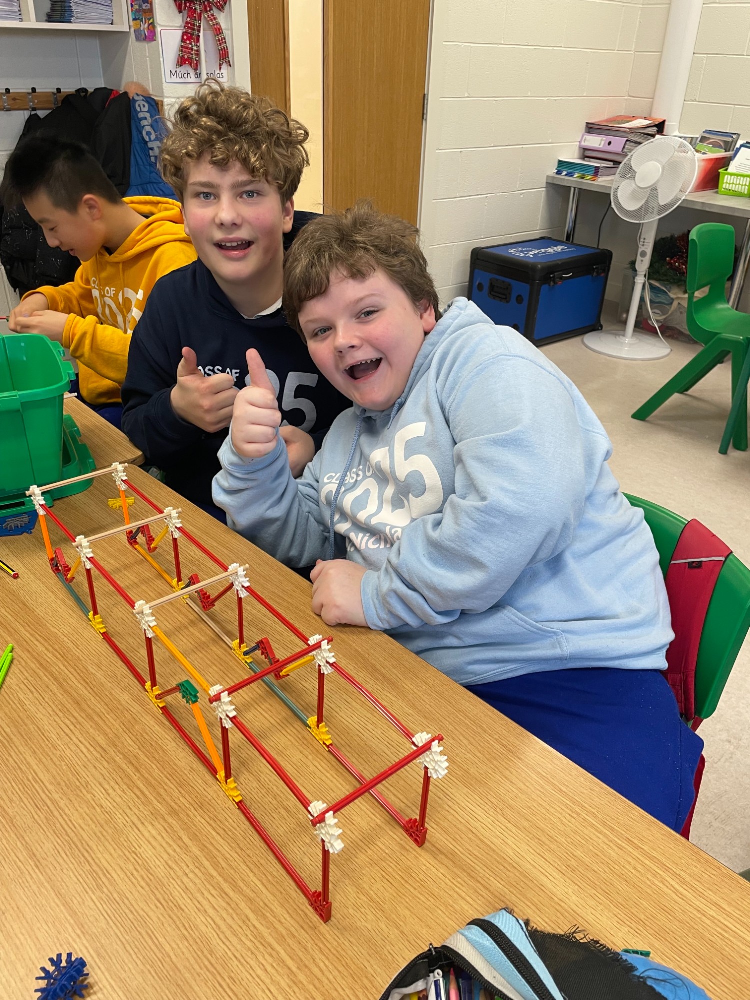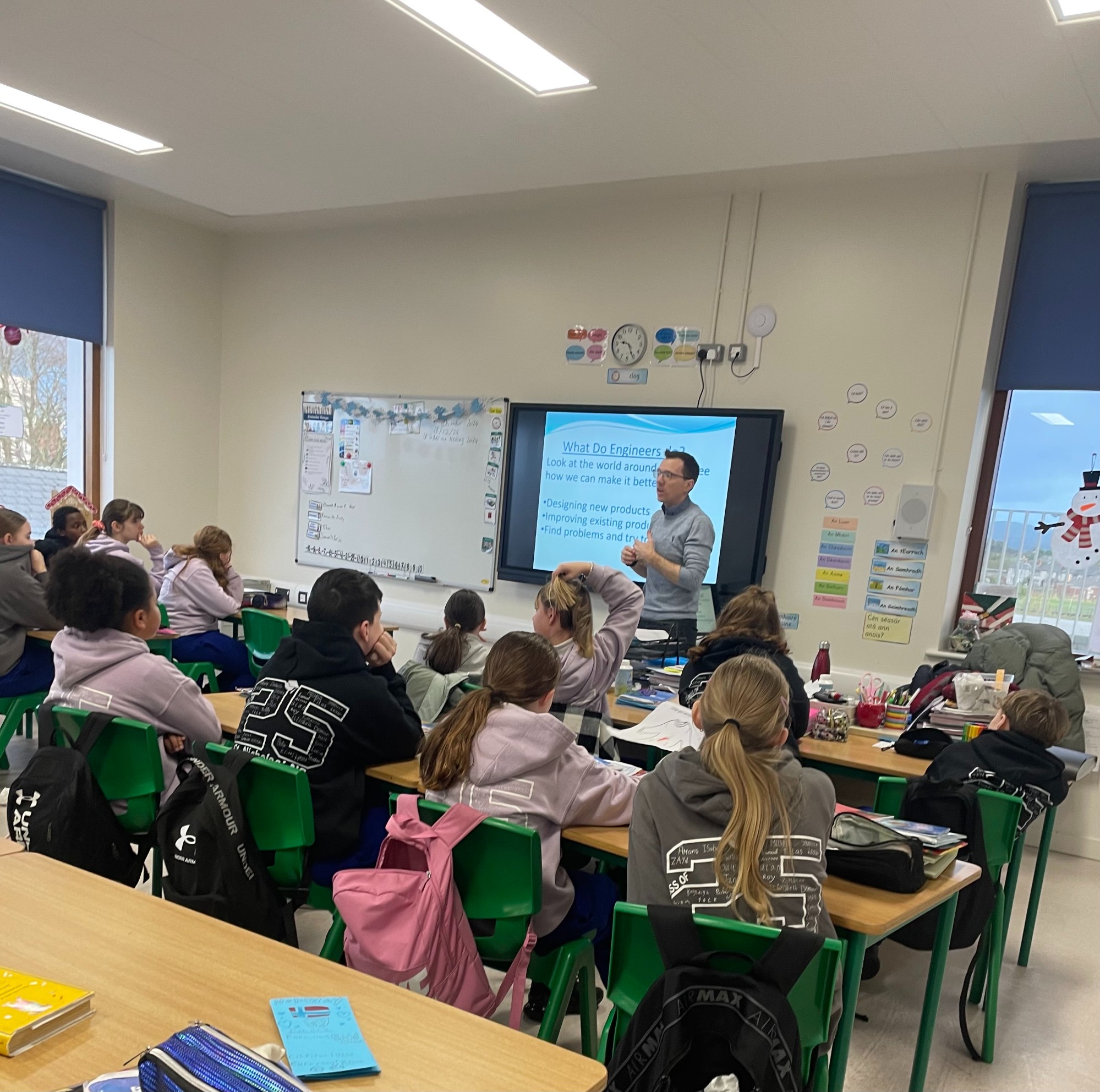 12 月 18 日,土木工程师 Gareth 到访六年级,他是 DKIT 的讲师。全班同学了解到,工程师可以解决问题,而且工程师有许多不同的类型。 随后,全班同学有机会成为工程师,分组设计桥梁。他们的设计必须通过砝码强度测试。当桥梁在压力下坚固或倒塌时,欢呼声和惊叹声充斥着整个教室。全班同学表现出了出色的合作精神和解决问题的能力。感谢 Gareth 的到访。我们玩得很开心!