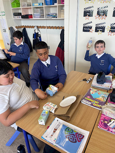 四班和五班一直在学习声音。我们从家里收集了可回收材料,制作了自己的乐器。我们玩得很开心,还制作了很多音乐。