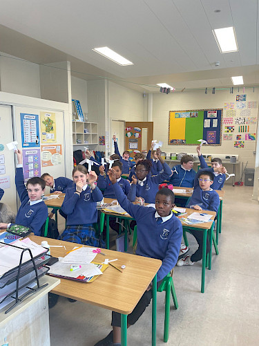 A 4., 5. és 6. osztályban a DKIT H20 tudósait fogadták. Még laborköpenyt is viselhettünk! Az osztályok két STEM tevékenységben is részt vettek, az egyikben papír helikoptereket kellett készíteni, a másikban pedig a leghosszabb papírláncot kellett létrehozni egyetlen papírlapból.
