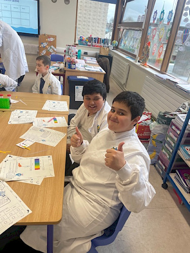 A 3. és 4. osztályban egy szórakoztató kísérletet végeztek papírtörlővel és ételfestékkel.