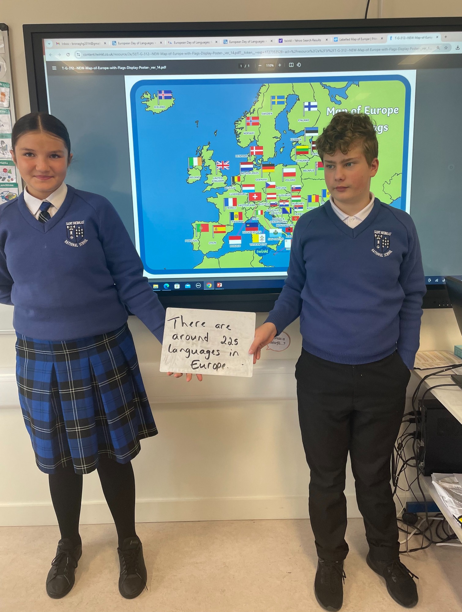Šiandien 6-oje klasėje minėjome Europos kalbų dieną. Sužinojome, kad Europoje kalbama apie 225 kalbomis! Aptarėme kalbų svarbą ir pasidalijome, kokiomis kalbomis kalbame. Po to, dalyvaudami visoje Europoje vykusiame konkurse, sukūrėme Europos kalbų dienai skirtus marškinėlius. Visi sutarėme, kad verta mokytis kalbų!