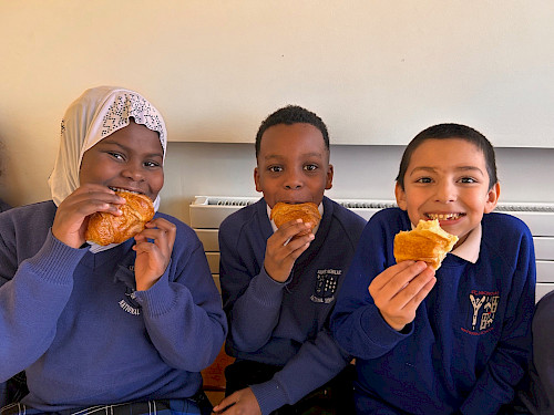 Prancūzų kalbos pamokų pabaigoje vyresniųjų klasių mokiniai mėgavosi gardžiais kruasanais ir bagetėmis. Tikimės, kad vaikai ir toliau kalbės prancūziškai. Bravo!
