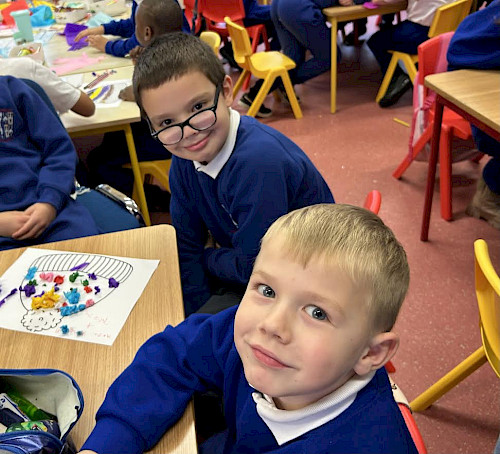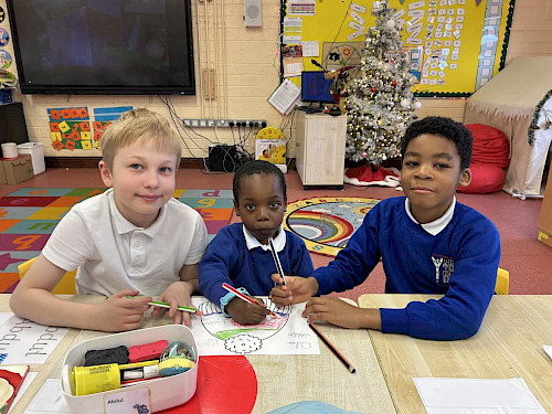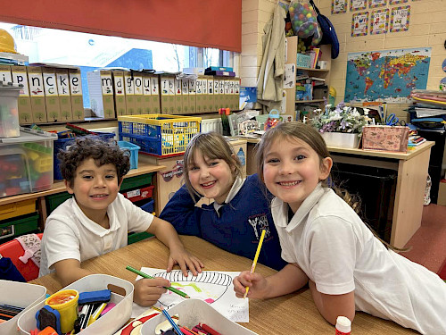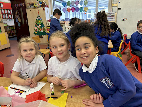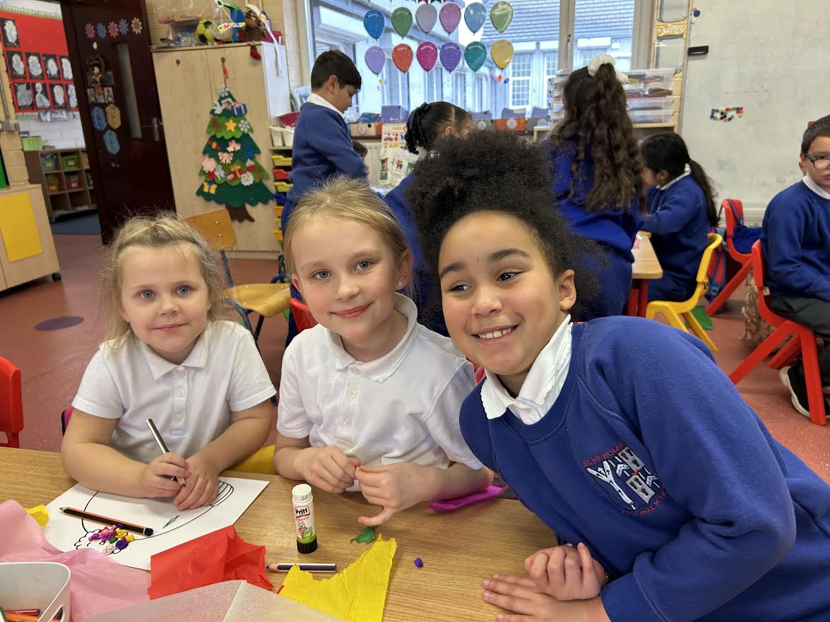 Druga i trzecia klasa pani Taggart dołączyły do młodszych i starszych dzieci pani Bingham, aby wykonać świąteczne ozdoby. Starsi uczniowie pomagali młodszym w wykonywaniu dekoracji i wszyscy cieszyli się ze wspólnej pracy. Było to proste, relaksujące zajęcie, które połączyło klasy i dodało miłego akcentu świątecznego do tego dnia.