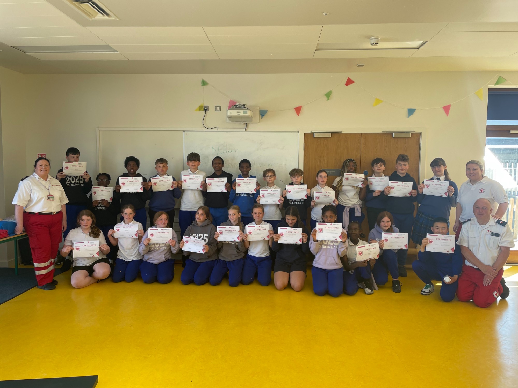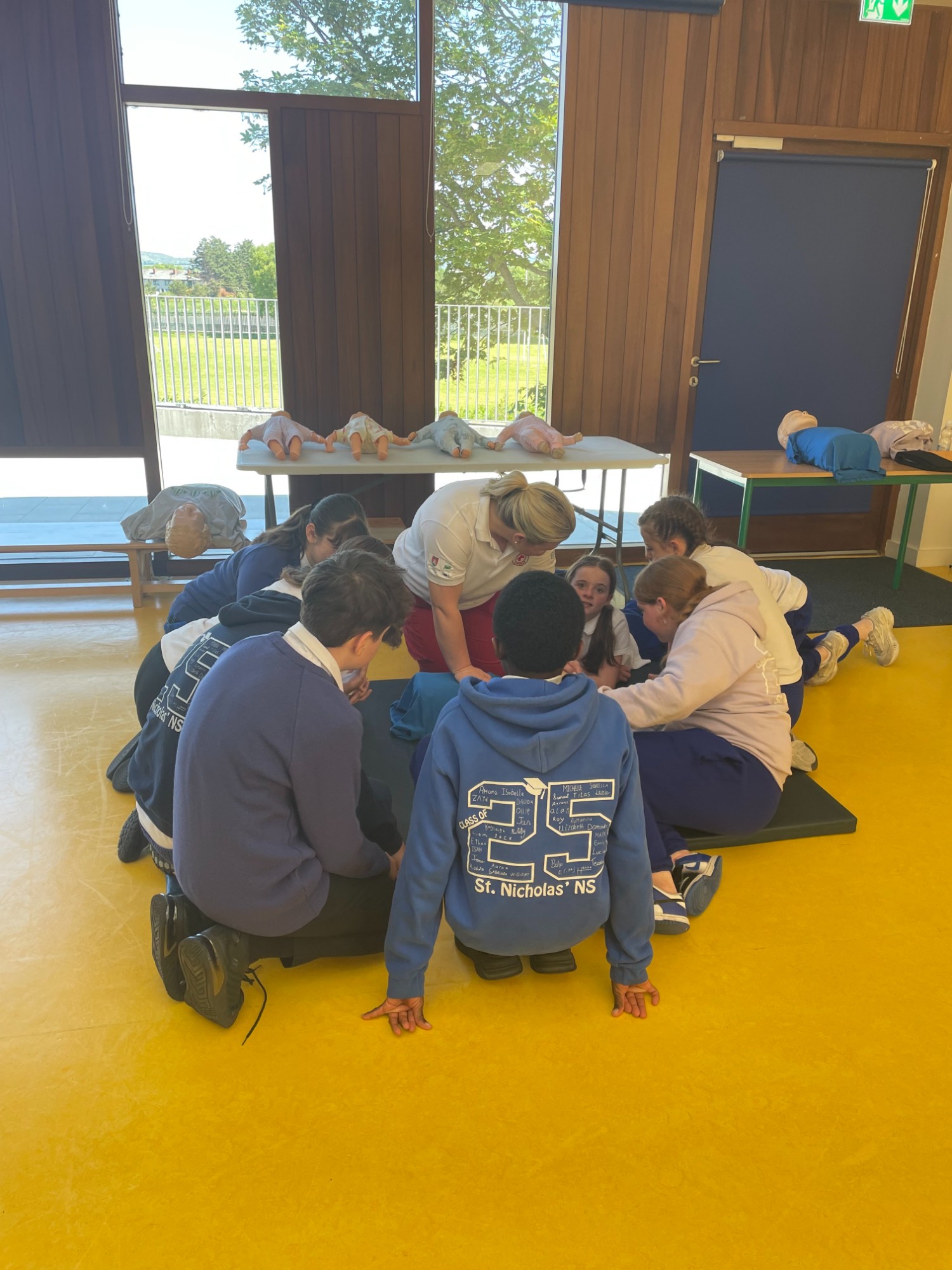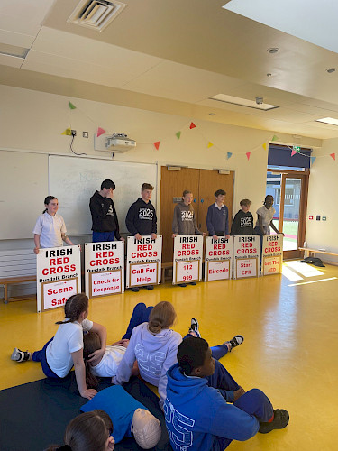 21 maja szósta klasa wzięła udział w bardzo pouczającej sesji szkoleniowej z oddziałem Irlandzkiego Czerwonego Krzyża w Dundalk. Uczniowie nauczyli się ważnych umiejętności życiowych, takich jak wykonywanie resuscytacji krążeniowo-oddechowej, co zrobić, gdy dziecko się dławi, jak ułożyć osobę w pozycji do odpoczynku i wiele więcej. Uczniowie wzięli udział w zajęciach praktycznych i quizach sprawdzających ich wiedzę. Każdy uczeń otrzymał certyfikat i torbę ze słodyczami. Chcielibyśmy podziękować Patowi i jego wspaniałemu zespołowi za poświęcenie czasu na przyjście i nauczenie nas dzisiaj. Szkolenie bardzo nam się podobało.