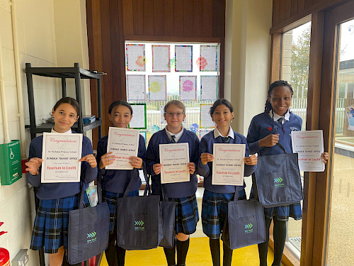 Felicitări Mia, Maia, Lada, Andrea și Somto pentru câștigarea concursului Louth Tourism Project. Ei au primit un certificat semnat de ofițerul de turism din Dundalk și o pungă cu cadouri. Câștigătorii au fost aleși de tatăl dnei Reidy, care este ghid turistic în Dundalk. Biroul de turism a fost foarte impresionat de proiecte, iar câștigătorii vor fi expuși în birou. Clasa a avut la dispoziție 7 nopți pentru a finaliza proiectul ca parte a temelor pentru acasă. Ei au făcut cercetări online, au desenat și au imprimat fotografii. Bravo tuturor.